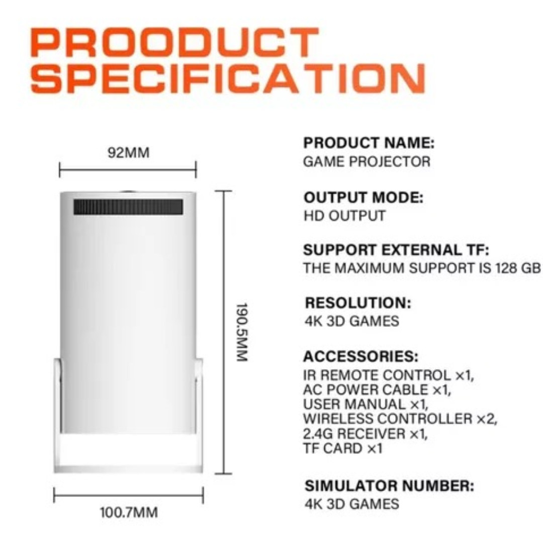 Con el Mini Proyector Consolas 2 en 1 Retro M30, llevar el entretenimiento al siguiente nivel es más fácil que nunca. Esta consola todo en uno funciona tanto como proyector para películas en alta definición como consola de videojuegos retro. Perfecto para disfrutar de películas o videojuegos en cualquier lugar, su diseño compacto y sus múltiples opciones de conectividad permiten que lo uses con facilidad, ya sea por Bluetooth, WiFi, USB o HDMI.